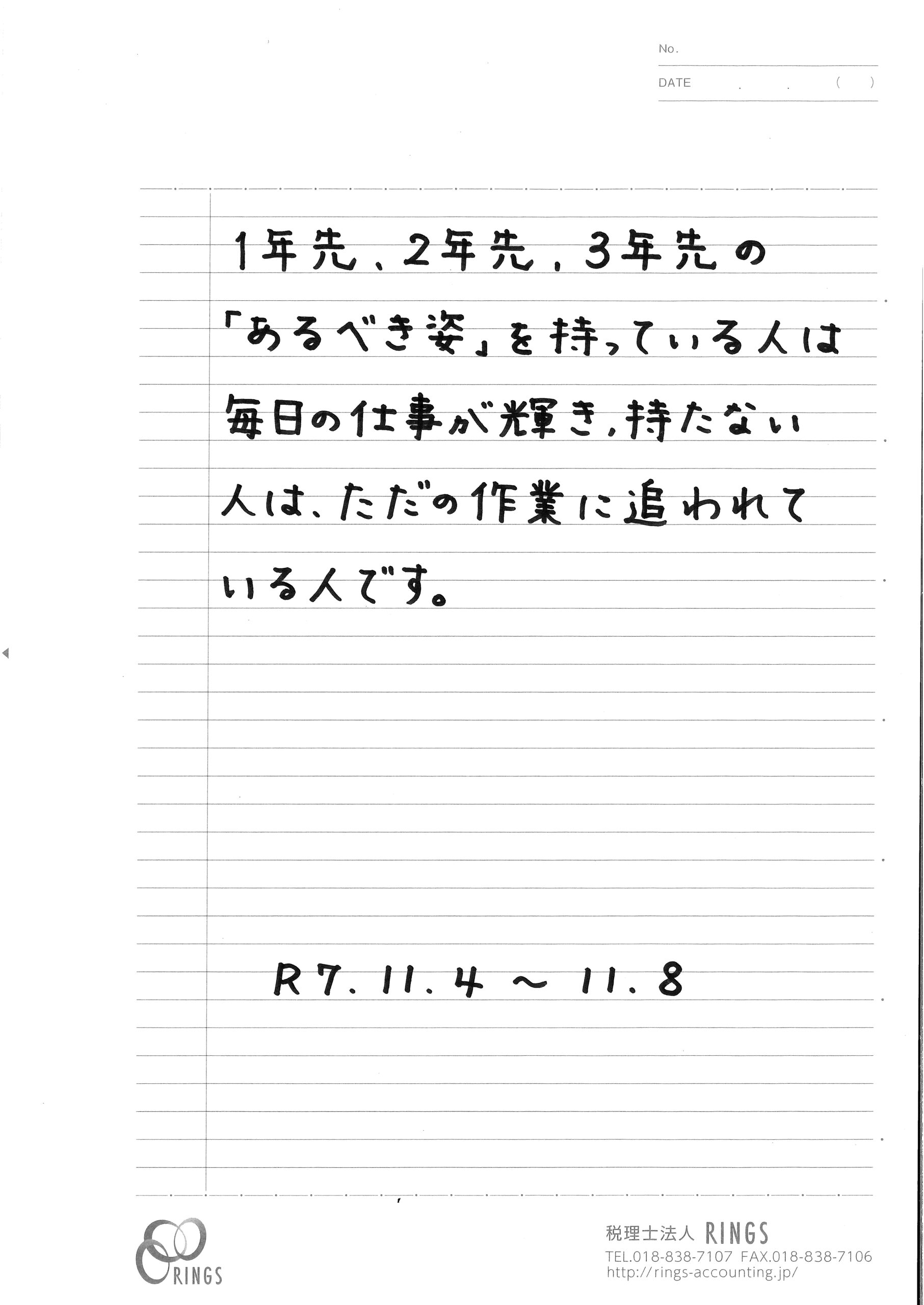 私たちの仕事も同じで、ただ量をこなすだけではなく、その先にいるお客様のことを思いながら一つひとつを丁寧に行うことで、より良い結果につながるのだと思います。私自身も、この言葉を胸に、日々の業務に心を込めて取り組んでいきたいと思い、今週の言葉といたしました。