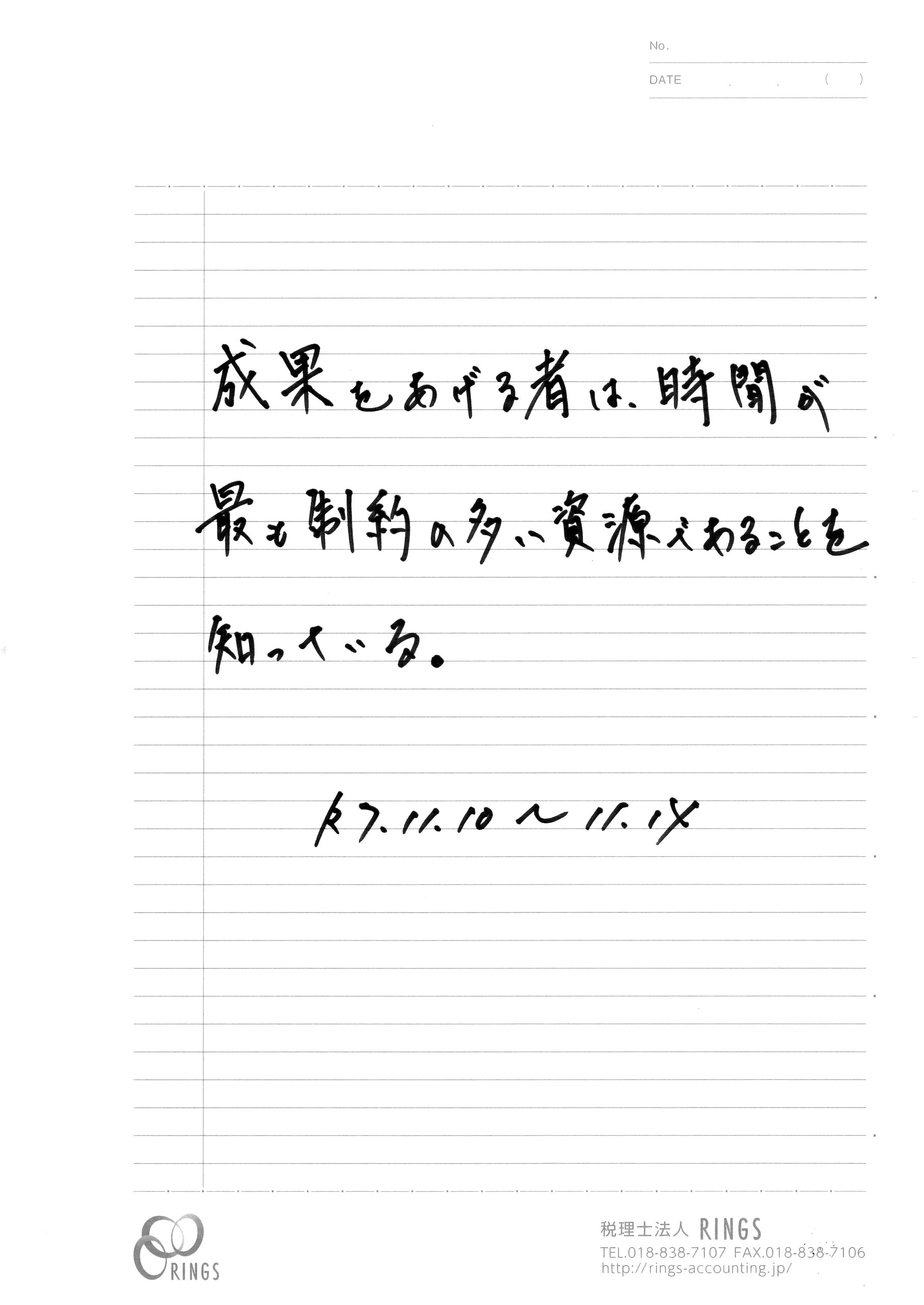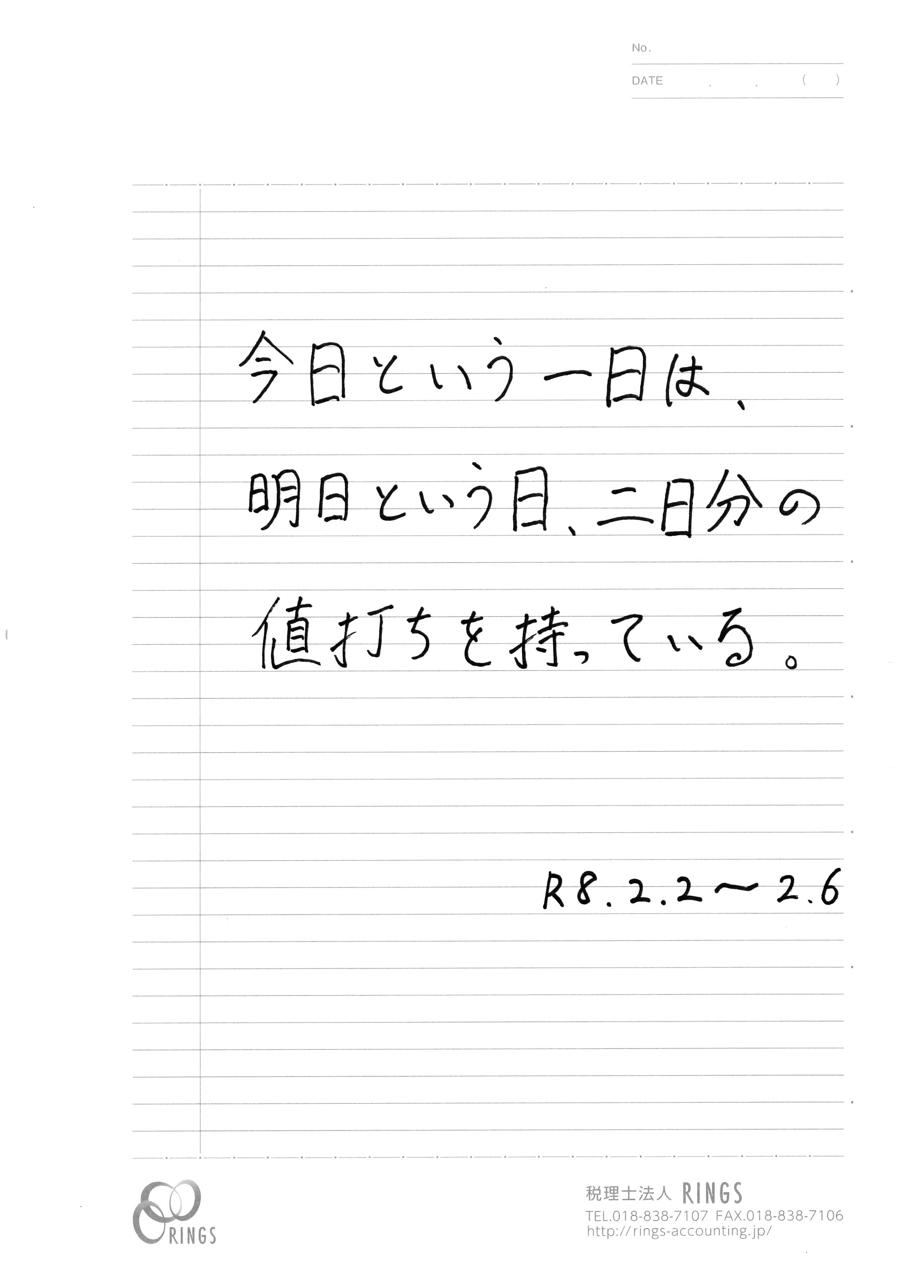 週の始まりに当税理士所員が、「今週の言葉」を決め、直筆にて 掲示発表します。