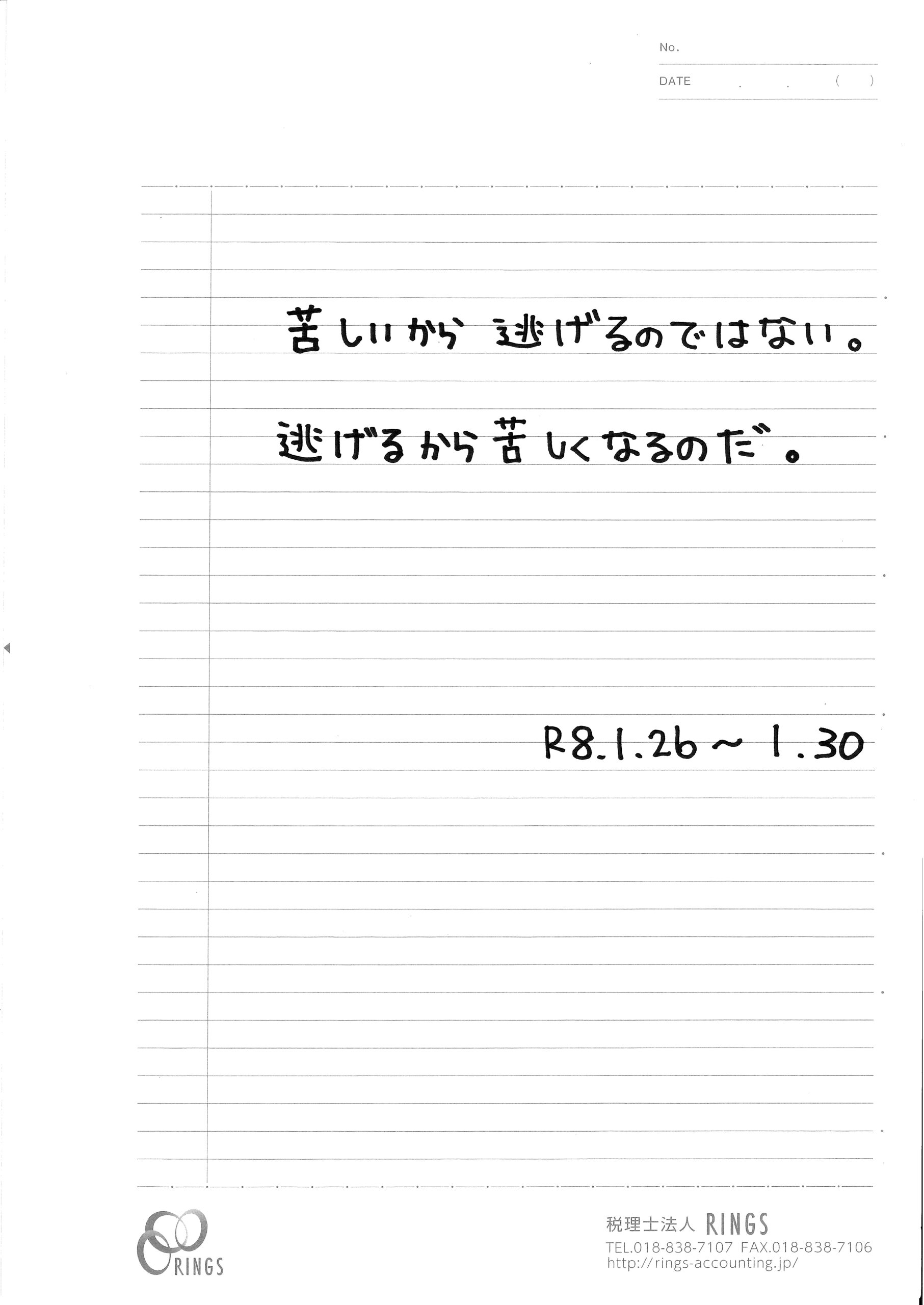 忙しさや困難に直面すると、気持ちが後ろ向きになりがちですが、逃げずに向き合う行動そのものが、結果として苦しさを軽くし、次の前進につながると、この言葉は教えてくれます。