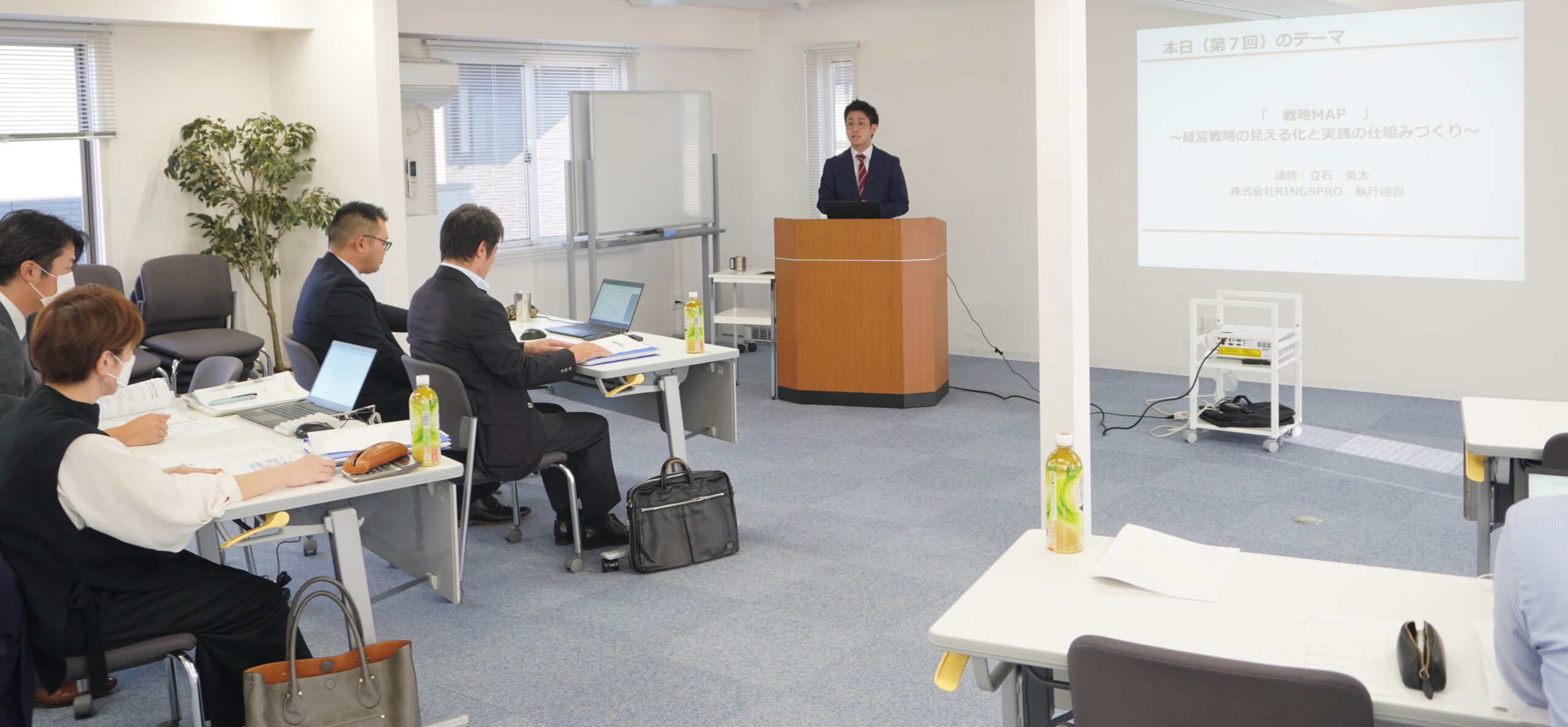 2025年11月6日(木) 後継者塾 第7講を開催しました。 第7講は「戦略マップ」 経営戦略の見える化と実践の仕組みづくり がテーマでした。 ご参加いただきました皆様、誠にありがとうございます。 〇受講後の感想 ・戦略マップを形にすることで、自社で不足している部分への気付きがあり、大変勉強になった。 ・担当者の助言もあり、多くのことに気付くことができた。 などのご回答をいただきました。